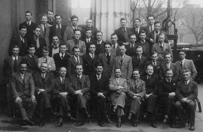 Photo provided by Clifford (Cliff) Jones. S.T.C. 1945-47 - "I am in the attached photograph, third row back, thirteenth from the right hand side. I can recall a few names of others in the group. Mr Scrivens is naturally in the front row, seventh from the right hand side, with Mr Charles sitting to his left."
