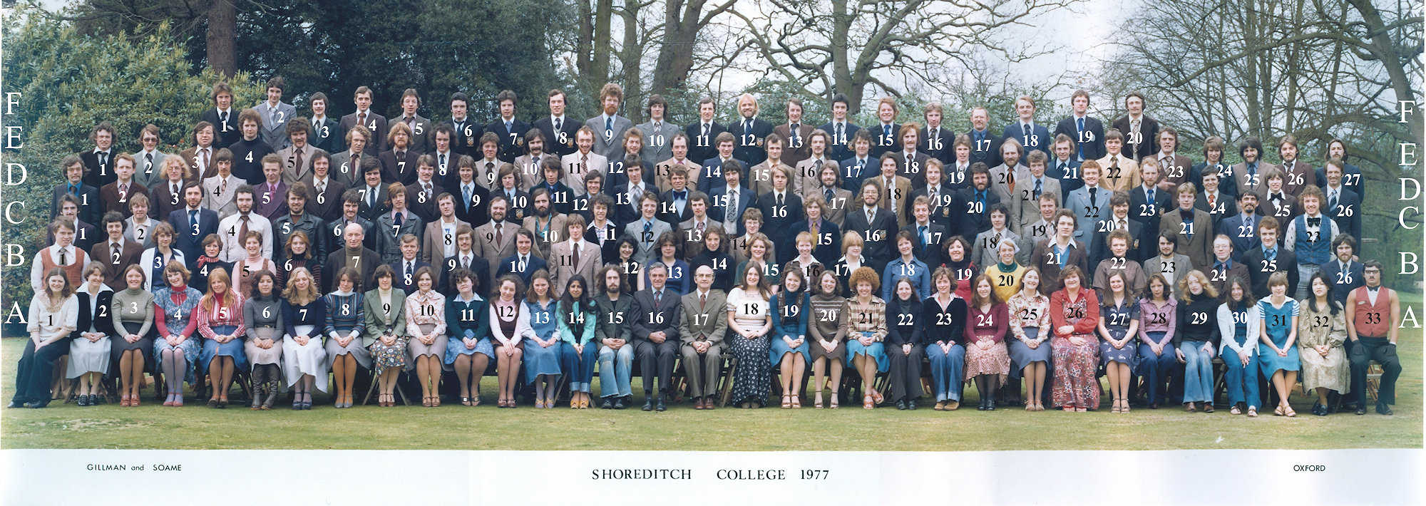 1977 Year ~ Formal Photograph with identifying numbers + Link to list of names of students (pdf) (courtesy Julian Foster, recently updated by Roger Barnaby)